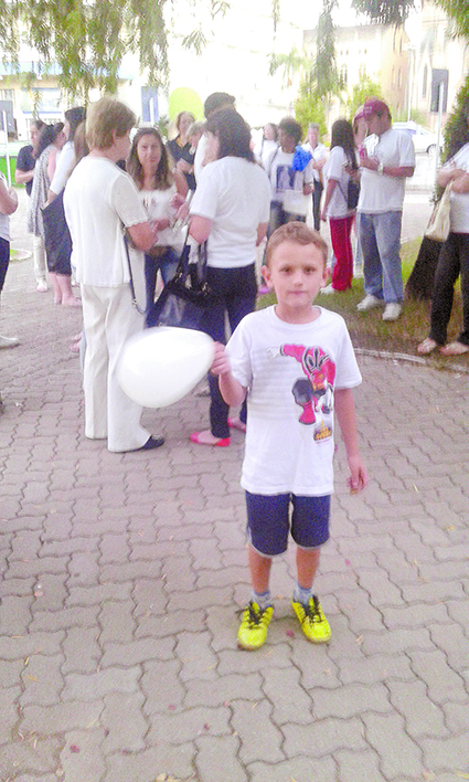 Jean Miguel Roos, com 7 anos,exercendo a cidadania, na caminhada de Respeito aos Professores.