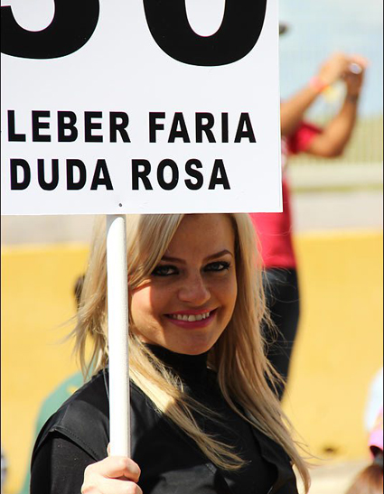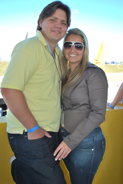 Prefeita Kelly Moraes entre os pilotos Cacá Bueno e Cláudio Dahruj, que lideraram a prova do Campeonato Brasileiro de Gran Turismo em Santa Cruz, no último final de semana.
