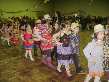 Divertindo-se no Arraial: Isadora Fiorin, Morgana Fiorin e Vitória Caroline