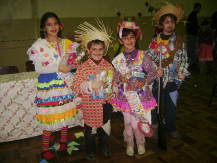 Os vencedores da escolha de Caipiras: Isabela Araújo Silva, Caipira Infantil; Luis Joaquim de Queiróz, Caipira Mirim; Vitória Yohana D´Ávila Pereira, Caipira Mirim e Lucas Jovani Zatt, Caipira Infantil