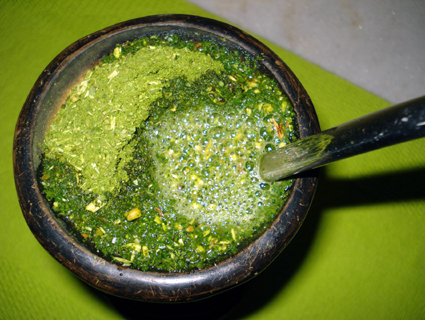 E o uso da folha da Erva Mate (secada) colocados em porongos e sorvido com um canudo de taquara. A infusão, hábito que fora considerado na era colonial um hábito de pagão e foi combatido pelos espanhóis bem como pelos padres Jesuítas; somente mais tarde este hábito foi aceito e considerado uma alternativa para combater o alcoolismo crescente entre os nativos e assim o estigma contra o Mate fora dissipado!