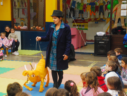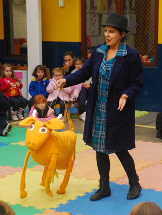 Durante o dia de ontem, 25 de junho, a escritora Valquíria Ayres trouxe a história do seu último livro, A vaca amarela. Mas mais do que simplesmente ler, usou do teatro para contar os fatos, prendendo a atenção das crianças e tornando-as personagens da trama.