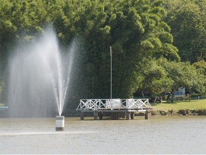 Outra vantagem do quiosque é a magnífica vista para o lago e ampla área verde