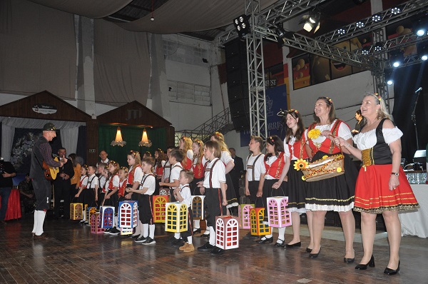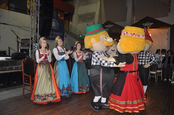 E a noite foi ainda mais completa com os bonecos símbolos da festa, a família Fritz, Frida, Max e Mili. Encerrando a abertura o tradicional brinde das autoridades e a apresentação de danças pela Sociedade Cultural e Folclórica Oktobertanz e o Kronentanzgruppe do Centro Cultural 25 de Julho.