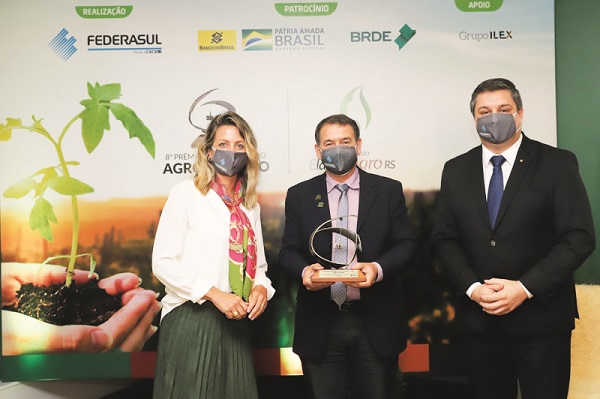 Em solenidade realizada na última quarta, 30, na sede da Federação de Entidades Empresariais do Rio Grande do Sul (Federasul), em Porto Alegre, foi realizada a entrega do 8º Prêmio Vencedores do Agronegócio. Em razão da pandemia do coronavírus, a solenidade ocorreu de forma híbrida com limite de pessoas e transmissão on-line. Além da cerimônia, que se ateve a todos os protocolos exigidos, o encontro contou a participação, por meio do Canal 1 da Expointer Digital, do secretário da Agricultura do RS, Covatti Filho, e do senador Luiz Carlos Heinze, via plataforma Zoom.