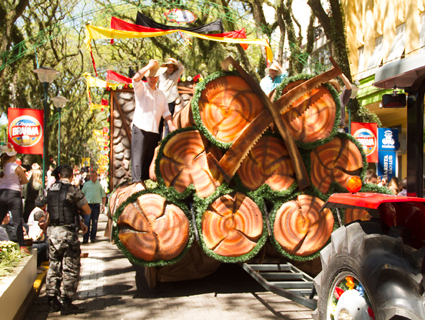 O reflexo da organização do trabalho e da produção foi destacado em alegorias que encantaram o público. A alegria dos 1,8 mil figurantes, distribuídos entre os carros alegóricos, contagiou a multidão que lotou as calçadas desde a Rua Marechal Floriano até a Galvão Costa. O carro Bierwagen Junior, tradicionalmente presente nas ruas de Santa Cruz em saídas nos sábados da festa, trouxe uma corbélia de flores que são mensageiras de amor, alegria e carinho. Outros destaques foram a bicicleta coletiva Zig Zag Zug e as duas bandas vindas diretamente da Alemanha – Trachtenkapelle Friesenhofen e Allgaier Schlanzlmusi.
