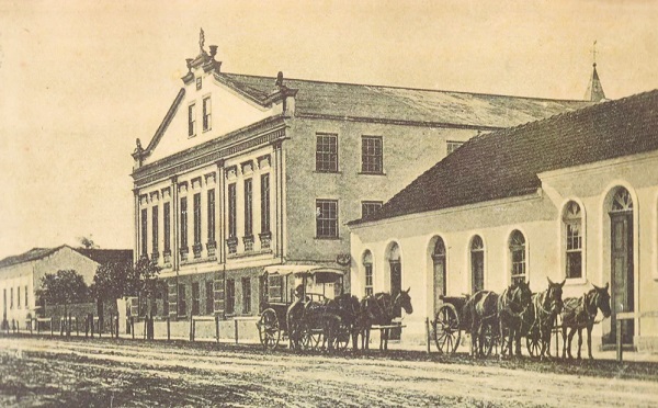 Em julho de 1898, o padre Francisco Schleipen chegou a Santa Cruz para orientar a construção do edifício que a sociedade dos homens católicos estava construindo. Em janeiro do ano seguinte, o bispo de Porto Alegre, Dom Claudio José Gonçalves Pôncio de Leão, veio abençoar a pedra fundamental da sede. Houve festa no local. Finalmente pronta, a maciça edificação ficou com dois pisos, 66 pés de frente, 75 pés de fundo e 43 pés de altura, tendo um salão enorme, que podia abrigar até 2 mil pessoas. Todas as grandes concentrações de pessoas aconteciam na Aliança: congressos, assembleias, encontros, teatro, concertos musicais, apresentação de corais. Os primeiros filmes de cinema mudo foram exibidos no local.
