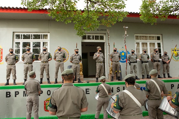 Os alunos postados em formatura tomaram conhecimento do conteúdo do Boletim Especial de aniversário, editado pelo Sr. Comandante Geral da Brigada Militar, coronel Rodrigo Mohr Picon, que cobriu toda a história da Instituição desde sua criação, enfatizando as conquistas da atualidade, tais como o plano estratégico institucional, o Programa Institucional “Avante” em conjunto com o Programa Governamental “RS Seguro”, ambos alicerçados na análise criminal e na atividade de inteligência, refletindo em resultados expressivos na redução da criminalidade no Estado. Especial destaque assume o papel do Policial Militar no planejamento estratégico, suportado e assistido por investimentos em proteção física e mental, sendo o agente da transformação social, apoiado nos pilares da modernização e humanização.