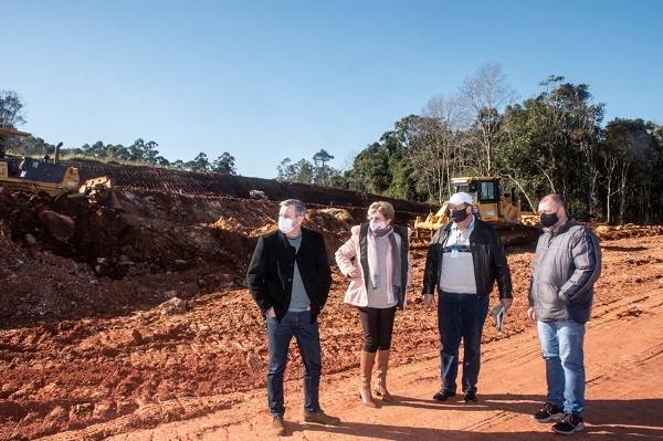 Nesta sexta-feira, 30, a prefeita Helena Hermany e o vice-prefeito Elstor Desbessell, acompanhados pelo secretário da Agricultura, Hardi Lúcio Panke, pelo secretário de Obras e Infraestrutura, Edmar Hermany, e por servidores municipais e da Emater/RS, visitaram as futuras instalações do empreendimento.