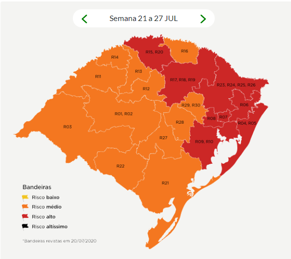 Novamente a Região de Santa Cruz do Sul (R28) iniciou a semana à espera da divulgação oficial das bandeiras do modelo de Distanciamento Controlado proposto pelo Governo do Estado. Em mapa preliminar divulgado na sexta-feira, 17, a região foi classificada com bandeira vermelha de risco alto por contaminação pelo novo coronavírus. Durante o fim de semana, a Prefeitura Municipal e a Associação dos Municípios do Vale do Rio Pardo (Amvarp) trabalharam na construção de um novo recurso que foi enviado ao Gabinete de Crise do Estado e analisado.