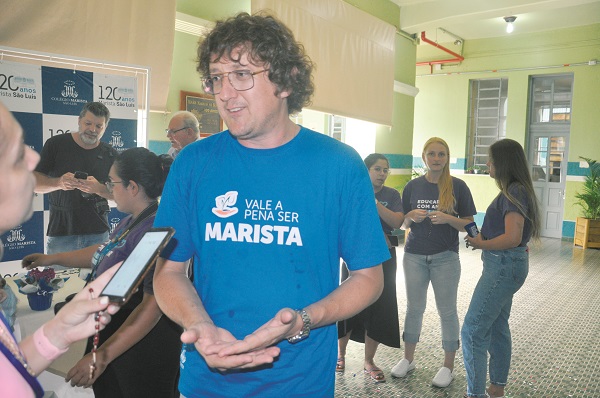 “Eu atualmente trabalho e moro em Bom Princípio, perto da cidade em que os irmãos maristas chegaram no Rio Grande do Sul”, frisou o irmão Geandir. “Nós temos lá um Centro Vocacional, Centro de Acolhimento de Juventude e Centro de Espiritualidade Marista. Congregamos estes três setores na mesma casa abrindo espaço para as juventudes, que é o nosso forte de atuação. Como temos muita parceria com o colégio, nossa forma de atuação é trabalhar o projeto de vida com os jovens, independente se são maristas ou de escolas públicas, pois atendemos gratuitamente, auxiliando o jovem a pensar o seu projeto de vida. Durante este processo oferecemos momentos de espiritualidade, reflexão e retiro na nossa residência. E aqui temos como tradição, todos os anos em agosto, o mês das vocações, então a gente vem fazendo esse trabalho e assim despertar além do lado profissional também o vocacional. Qual a diferença que quero ser no mundo? Não só o fazer, mas também no ser. Qual a diferença que quero fazer no mundo? Qual a diferença que quero ser e fazer na sociedade? Os 120 anos representam uma solidificação de toda uma história que vem acontecendo, passando de gerações em gerações. É tradição. São vidas que passaram por aqui e que marcaram como educação marista. Até o início do ensino médio não fui aluno marista, mas sempre tive muito ligado aos maristas, e isso fez total diferença, por isso escolhi a vocação de irmão marista, como meu projeto de vida, e isso é importante mostrar para os jovens, essa outra opção. E o jovem precisa conhecer, se ele vai aderir depois, vai de cada um”, comentou ele.