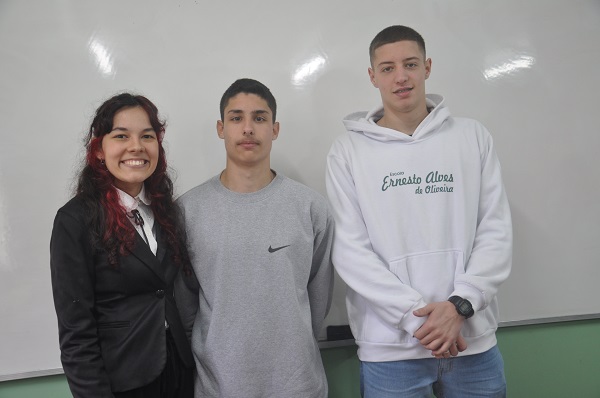“Por meio de conversas com a ré, tivemos o conhecimento do caso, assim iniciamos a busca de evidências e provas que provassem que a conduta da ré foi totalmente condizente com sua situação de vida. Através de aplicativo de mensagem, observamos que está situação era delicada, pois abordava ações de relacionamento abusivo por parte do autor, e com isso observamos também seus hematomas do corpo, por meio disso chegamos a conclusão que o caso ia muito mais além do que uma situação de legitima defesa. Levamos cerca de três semanas para coletar os dados. Foi um projeto diferente, fora do cotidiano escolar, fez com que tivéssemos uma visão diferente de sala de aula. Aprendemos que, quando se é um trabalho em equipe, só se obtém resultados positivos com o comprometimento de todos!”