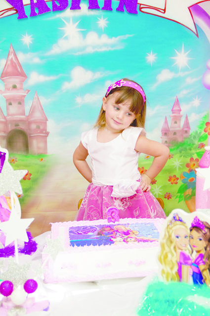 A bonequinha Yasmin Badek completou 3 aninhos. Para comemorar seus pais Rosilaine Schoepf e Aristeu Badek organizaram uma linda festa na Sede da Polícia Civil. O ambiente, que foi lindamente decorado com o tema Barbie no Castelo de Diamantes, ficou muito animado com a presença dos familiares e amiguinhos.