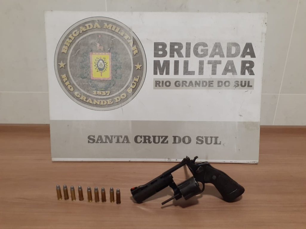 Durante atendimento a um acidente de trânsito com lesões na noite deste domingo, 3, a Brigada Militar de Santa Cruz do Sul apreendeu um revólver calibre 38. A arma municiada com seis munições intactas foi encontrada embaixo do banco da motocicleta. Outras três munições que caíram no chão também foram apreendidas.