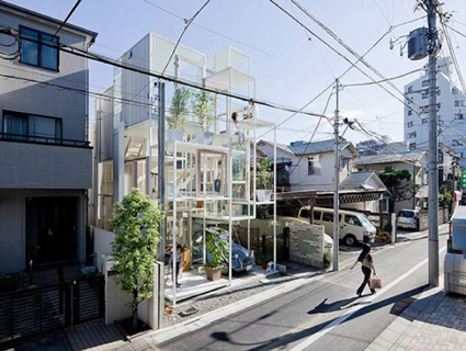 A casa foi planejada para a cidade de Tóquio, no Japão, e é feita quase que inteiramente de vidro, mesclado com uma estrutura de aço branco. Assim, a residência fica praticamente transparente se olhada de longe, desafiando a percepção das pessoas que passam pelo local.