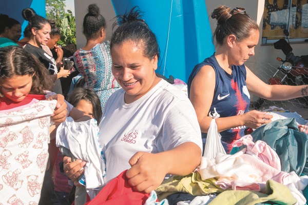 A dona de casa Flávia Bianca Prudência, 30 anos, compareceu ao local junto com a mãe Clarice, 49 anos, e os filhos Kemily, 7, Saymon, 11, e Rael, 1 ano e 9 meses. “Consegui bastante roupa para as crianças”, contou satisfeita. Junto com ela estava também a vizinha Gelci Canabarro Martins, 65 anos, que saiu de casa para buscar roupas para o irmão, que é acamado. “Também peguei bastante coisa”.