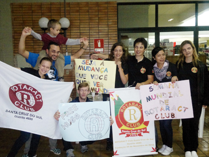 No dia 13 de março, o Rotaract Club Santa Cruz, nas dependências da Unisc, Centro de Convivência, realizou os Free Hugs, em homenagem ao Dia Mundial do Rotaract. Com cartazes e folders, os companheiros divulgaram o movimento rotaractiano para os universitários e distribuíram mais de 500 abraços, que são exemplo de um ato de bondade e humanitário executado por alguém cujo objetivo é apenas fazer as pessoas se sentirem melhor.