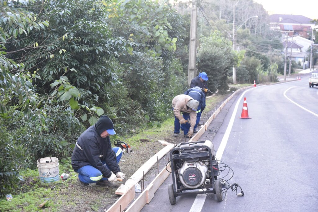No local, está sendo construído uma mureta de contenção em toda a extensão mais inclinada da via, no sentido centro-bairro, para impedir a infiltração de água no solo, já que durante as últimas chuvas, em um ponto do trajeto ocorreu o deslizamento de parte de um barranco bem próximo do pavimento. De acordo com o engenheiro da Defesa Civil, Leandro Kroth, a intervenção realizada no local é a mais viável. “A construção de mureta é uma forma de deslocar a água e impedir que ela se infiltre no solo, para evitar que deslizamentos iguais ao que houve se repitam”, explicou.