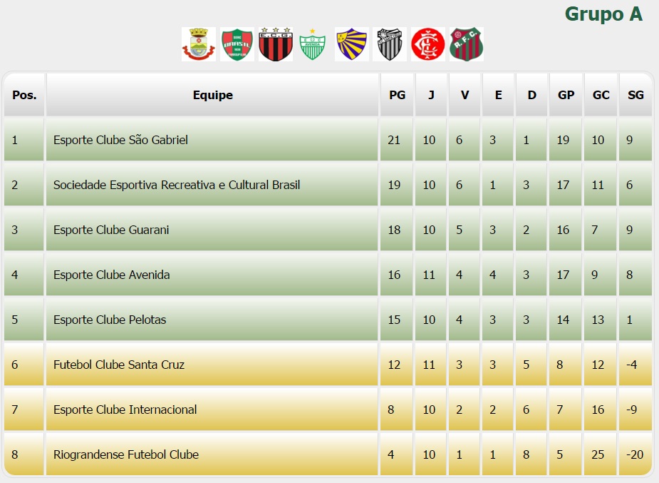 O último colocado (8º) na tabela de cada grupo está automaticamente rebaixado, já o sétimo, que hoje é o Inter de Santa Maria, ainda joga duas partidas contra o sétimo colocado da Chave B. O Santa Cruz ainda “seca” o Inter-SM, que tem oito pontos, quatro a menos que a equipe alvinegra, justamente o adversário que o coloradinho busca ultrapassar para fugir do rebaixamento sem ter que jogar o mata-mata final.