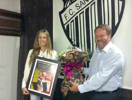 A Musa do Galo e do Gauchão/2012, Luiza Mazzarino Slaghenaufi foi homenageada pelo Conselho Deliberativo do FC Santa Cruz na assembleia realizada na noite da última sexta-feira, 11. O presidente do FC Santa Cruz, Léo Henrique Schwingel entregou um pôster em agradecimento à conquista de Luiza.