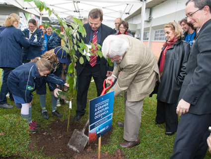Um dos maiores biólogos da atualidade está desde a manhã desta segunda-feira, 17, participando de uma série de atividades na Universidade e Santa Cruz do Sul (Unisc). Depois de participar de uma coletiva de imprensa, Jean Michel Cousteau plantou uma árvore em frente à biblioteca da instituição. A chuva não atrapalhou o ato, que aconteceu sob os olhares do reitor Vilmar Thomé, do professor Jair Putzke e demais presentes.