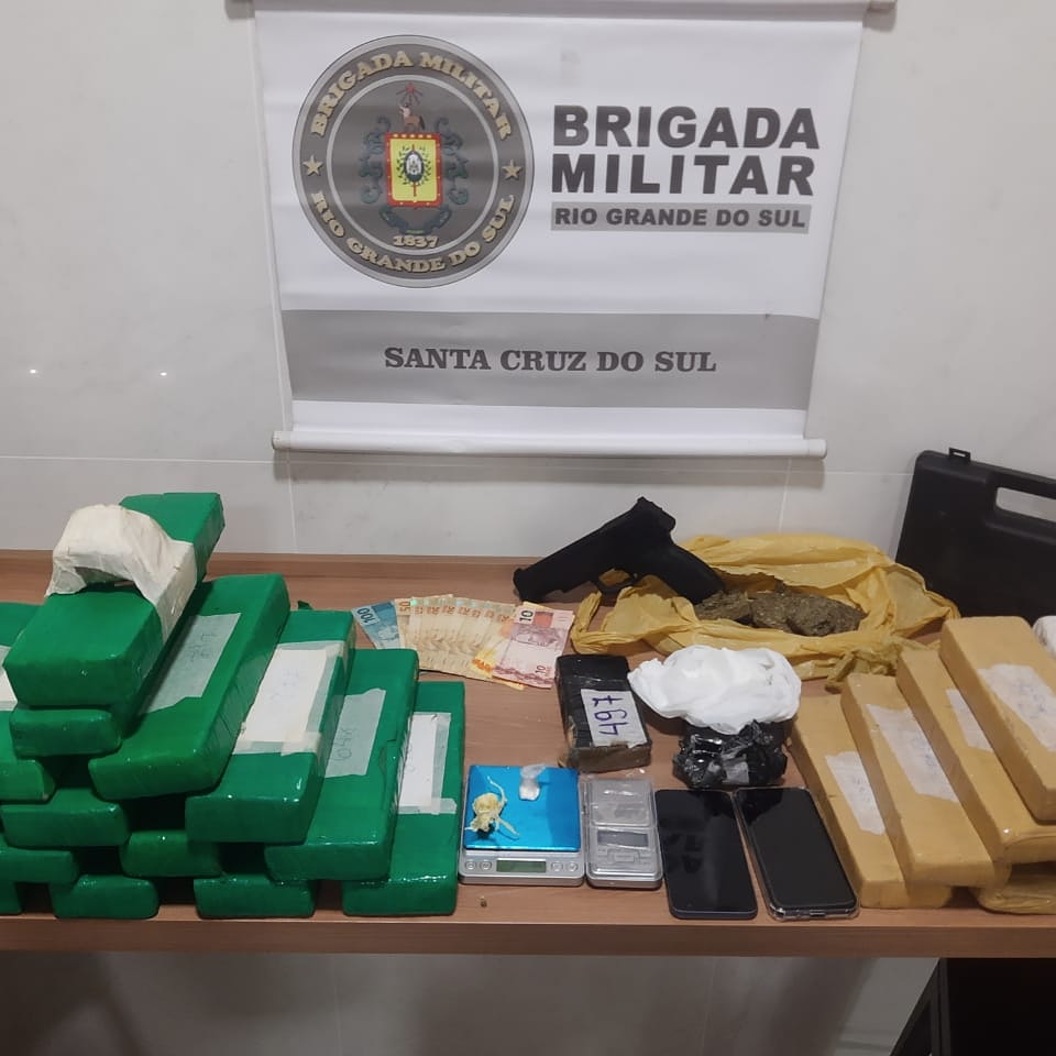 Na noite desta sexta-feira, 23, a Brigada Militar de Santa Cruz do Sul, através da Força Tática, apreendeu um adolescente por tráfico de entorpecentes. A apreensão ocorreu após informações advindas da sala de operações que um indivíduo estaria comercializando drogas no Bairro Vila Nova. Ao chegar no local, policiais militares avistaram o indivíduo localizando com este R$558,00 reais, uma mochila contendo 890 gramas de maconha, 89 gramas de cocaína, duas balanças de precisão, dois celulares e uma faca. Ainda, durante buscas nas proximidades da abordagem foi localizado mais uma grande quantidade de entorpecentes. Diante dos fatos, o adolescente foi encaminhado a Delegacia de Pronto Atendimento para registro do fato.