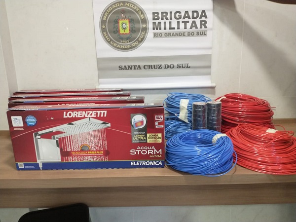 A Agência Local de Inteligência realizou um levantamento sobre golpes aplicados na região e sua possível autoria.Com essas informações, os policiais militares abordaram um veículo, na RSC-287, no Bairro Renascença. Durante a busca foram encontrados seis rolos de fio de cobre, 20 rolos de fita isolante, quatro chuveiros Lorenzetti e um aparelho celular.