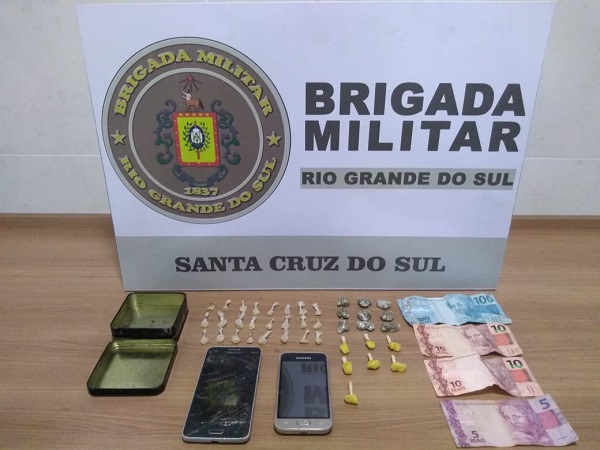 Com o jovem foram localizados dois celulares, a quantia de R$ 125,00, nove porções de maconha, 25 pedras de crack e sete buchas de cocaína. O material foi apreendido e o rapaz preso em flagrante, conduzido à Delegacia de Polícia e encaminhado ao Presídio Regional de Santa Cruz do Sul.