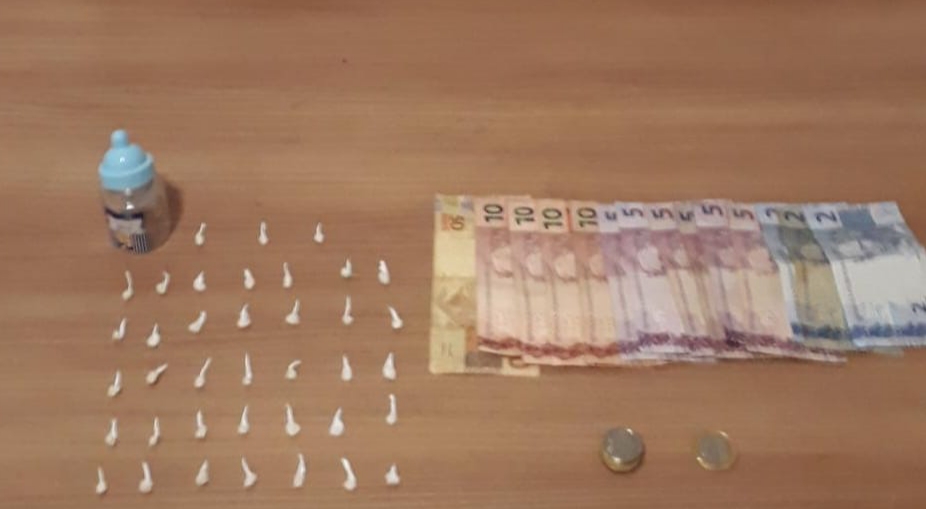 contendo 38 pedras de crack e R$ 128,00.