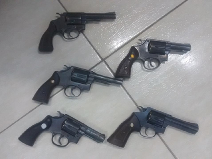 Cinco armas foram apreendidas na casa onde o grupo se escondia