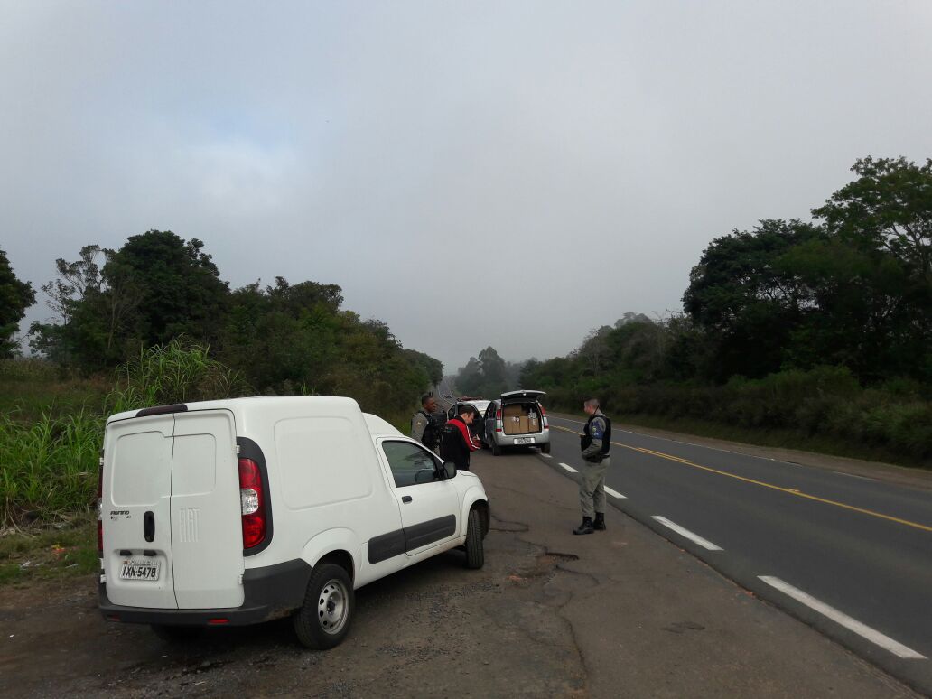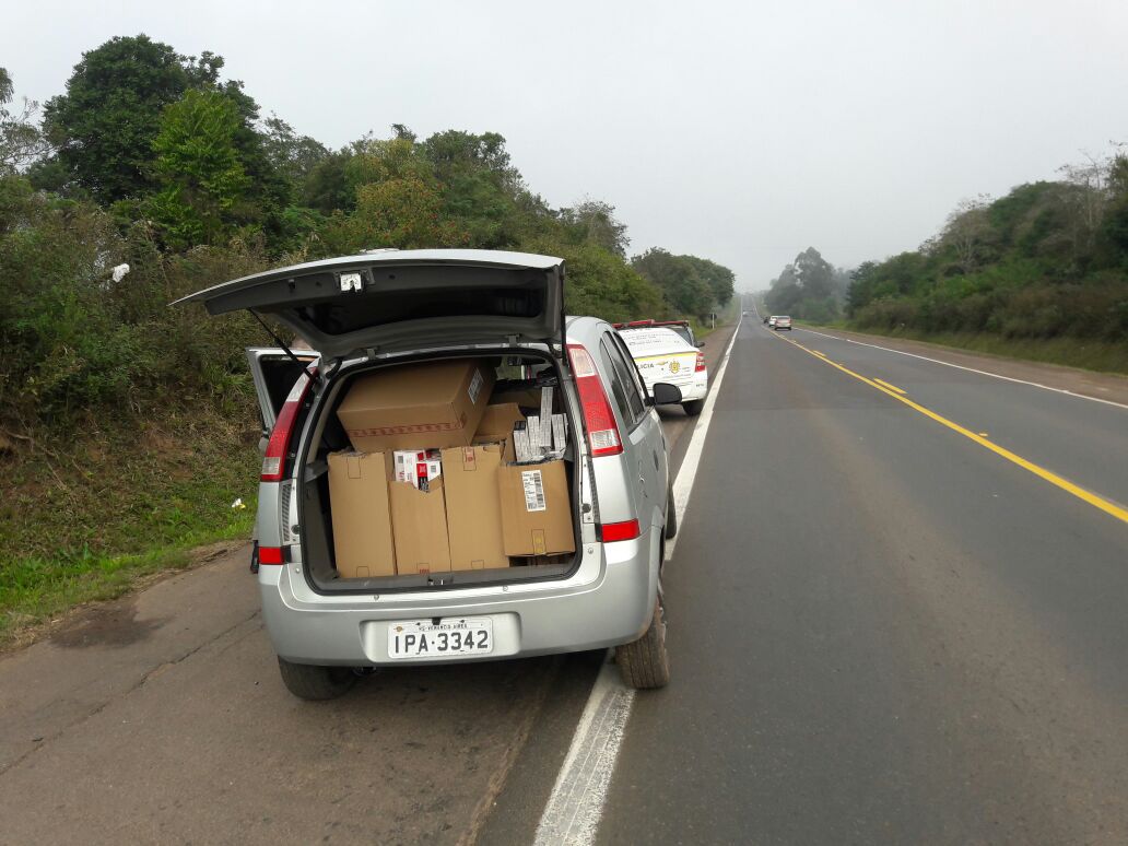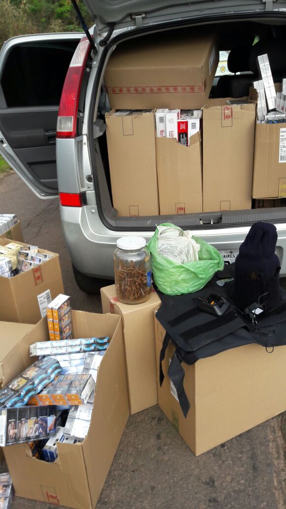 A carga de fumo e os veículos foram recuperados, sendo que o veículo meriva estava com placas falsas o que foi constatado pelo número do chassi.
