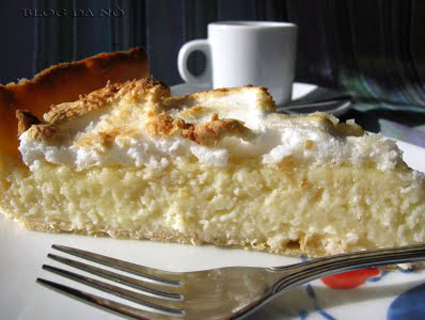 Montagem: Coloque o recheio e a cobertura. Leve ao forno novamente para assar e dourar a merengada.