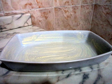 Acenda o forno e unte a fôrma. Esse é o primeiro passo do processo. Os bolos crescem mais se forem assados logo após o preparo. A não ser que a receita dê outra indicação, mantenha a temperatura em 180°. Forno alto ou baixo demais deixam o bolo murchinho.