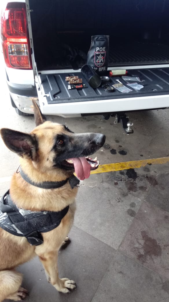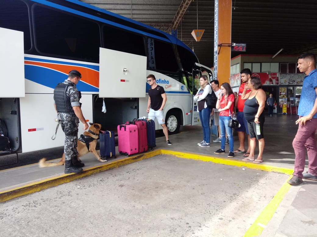 Na tarde desta quarta-feira (06/03), A Brigada Militar de Santa Cruz do Sul, por meio do Pelotão de Operações Especiais do 23º BPM, realizou a Operação Avante Rodoviária em Santa Cruz do Sul, a fim de coibir tráfico de drogas e outros crimes em transportes terrestres. Foram fiscalizadas linhas específicas de maior incidência e probabilidade, na linha oriunda de Porto Alegre. O cão de faro Radar sinalizou uma das malas, identificado o passageiro proprietário da mala, foi realizada buscas e apreendido um pacote com substância semelhante a maconha e material usado para consumo. Dada voz de prisão por posse de entorpecentes, foi lavrado Termo Circunstanciado pelo fato.