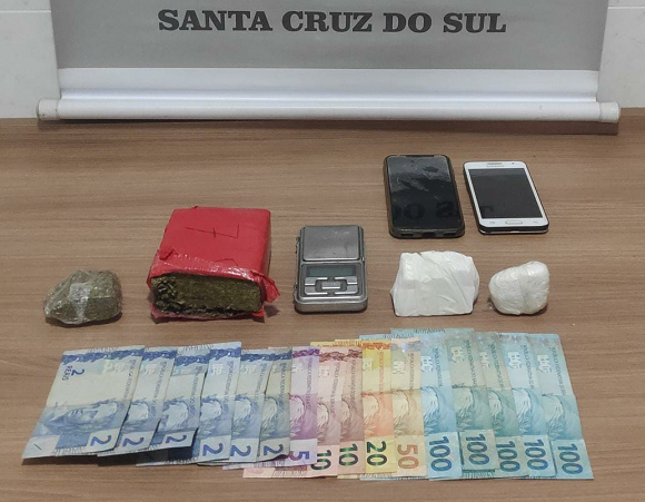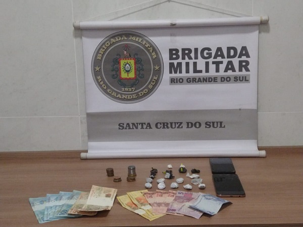 Na noite dessa sexta-feira, 18, às 19h30, a Brigada Militar de Santa Cruz do Sul prendeu um homem, de 20 anos, e uma mulher, de 18 anos, por tráfico de drogas, no Bairro Várzea, durante ações de polícia ostensiva próximo a um local conhecido pela traficância de entorpecentes, onde foi abordado um casal, o qual tentou fugir para o interior de uma residência ao perceber a aproximação dos policiais. Durante a busca pessoal foi encontrado com o homem 5,5 gramas de cocaína e 15 gramas de maconha fracionados para a venda e um aparelho celular e com a mulher a quantia de R$ 532.