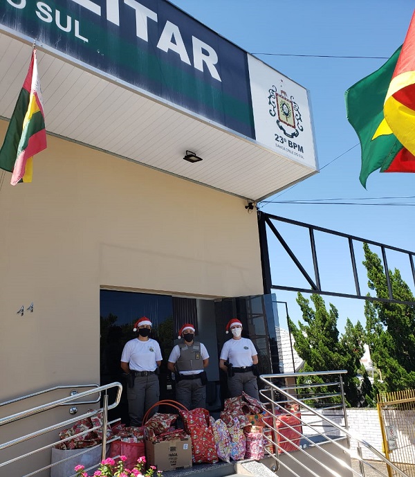 Na manhã de terça-feira, 23, policiais militares do 23º Batalhão de Polícia Militar (23ºBPM ), realizaram a entrega dos presentes arrecadados na Campanha Natal Solidário da Brigada Militar. A campanha arrecadou brinquedos, mochilas, estojos de maquiagem, roupas, carrinhos e bonecas.