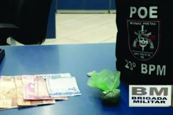 Após abordagem e identificação, foi verificado que tratava-se de indivíduo foragido do sistema prisional do município de Porto Alegre e estava em posse de 6,6 gramas de substância entorpecente com características de maconha e a quantia de R$173,25 em notas diversas.