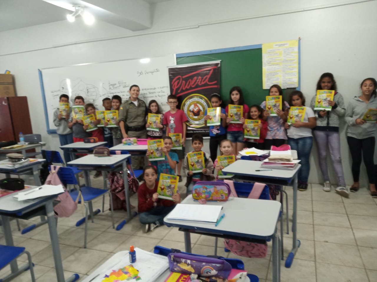 Na tarde de terça-feira (02/04), na Escola Municipal de Ensino Fundamental São Canisio, no Bairro Dona Carlota e Escola Estadual de Ensino Médio José Mânica, bairro Esmeralda, em Santa Cruz do Sul, foram realizadas as aulas Inaugurais do Programa Educacional de Resistência as Drogas e à Violência (Proerd) para as turmas de 5° ano destes educandários.