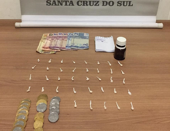 A Brigada Militar de Santa Cruz do Sul, através dos policiais militares da Força Tática, prendeu na madrugada deste sábado, 26, à 01h20, no Bairro Margarida Aurora, um homem, de 48 anos, por tráfico de drogas.