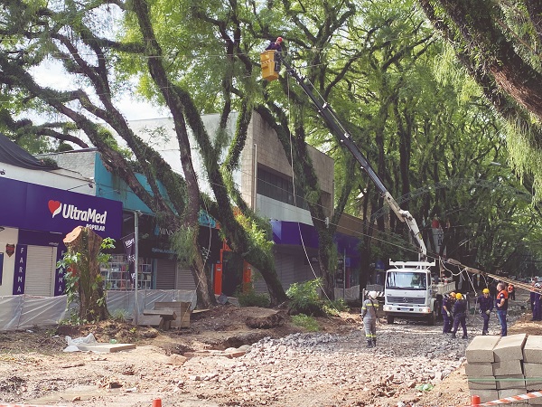 A revitalização da Rua Marechal Floriano Peixoto, na quadra compreendida entre Júlio de Castilhos e a 28 de Setembro, no centro de Santa Cruz do Sul, não será paralisada após os episódios de quedas de quatro tipuanas. A decisão é do prefeito Sérgio Moraes (PL), tomada em reunião na manhã de terça-feira, 18, no Palacinho da Praça da Bandeira, sede do governo municipal.