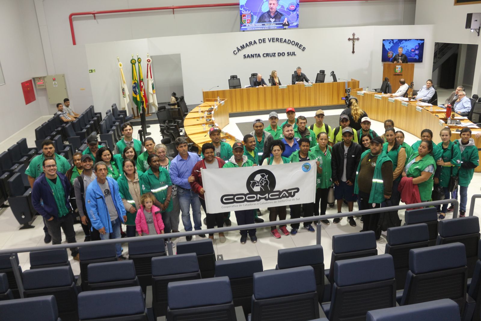 Além dele, outros vereadores se manifestaram favoráveis ao trabalho realizado pela entidade. A Cooperativa de Catadores e Recicladores de Santa Cruz do Sul (Coomcat) foi constituída no ano de 2010, através da luta das catadoras e catadores da Associação Ecológica de Catadores de Materiais Recicláveis (ASECMAR), pelo reconhecimento e valorização do trabalho.