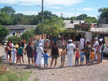 E na manhã de sábado, dia 30, em caravana eles partiram em direção aos bairros beneficiados – sendo no total oito –, o primeiro a receber a visita foi o bairro Capão da Cruz. Na maior euforia, as crianças esperavam pelos doces. De mãos dadas, os pequenos rezaram para agradecer pelo agrado que estavam recebendo. A alegria foi dividida com os familiares que acompanhavam as crianças. Em seguida, a caravana percorreu os bairros Santo Antônio do Sul, Rauber, Beckenkamp, Beco do Daer, Cintea, Bom Jesus, Beco do Miller e parte do Margarida Aurora.