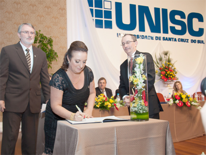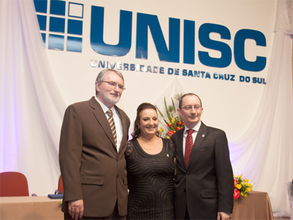 O momento mais esperado nos últimos meses para a primeira mulher a ocupar o cargo de reitora da Universidade de Santa Cruz do Sul (Unisc) aconteceu na tarde de quinta-feira, 19. Carmen Lúcia de Lima Helfer, eleita com 50,87% dos votos em novembro, vai comandar a universidade pelos próximos quatro anos. Ela foi empossada com o Auditório Central lotado.