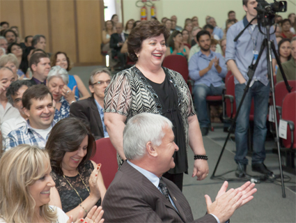 Após fazer seu pronunciamento de despedida, Vilmar Thomé recebeu uma longa salva de palmas do público que o aplaudiu de pé. Ele também foi homenageado, recebendo um cartão de prata das mãos do seu vice-reitor, que também será vice da professora Carmen Lúcia, EltorBreunig.
