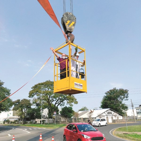 Em uma plataforma suspensa por um guindaste, o padre Antônio Pohl abençoou os motoristas. Para o casal, presidente da Paróquia Ressurreição, Milton e Clarissa Weigel, “foi emocionante e excepcional”, destacou.