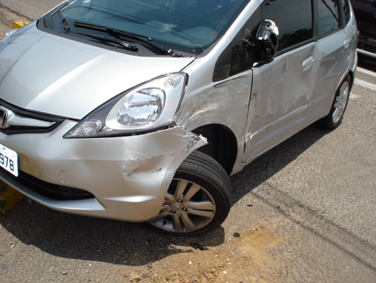Tentando evitar o pior, ela acabou parando o veículo, que foi prensado contra a mureta de contenção na esquina do Posto do Galo. O mesmo teve a lateral esquerda amassada, além do espelho retrovisor destruído. Com a batida, o pneu dianteiro esquerdo ficou torto, bem como as sinaleiras dianteiras quebradas.