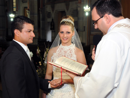 Os noivos na hora do sim