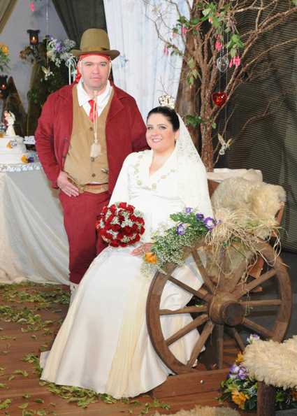 Dia 19 de maio, foi escolhido para o enrosco matrimonial de Alessandra Gruendling e Alexssandre de Carvalho. Os noivos vestidos de gaúcho, ao lado dos pais, Mauren Bullerjahn, Ricardo Gruendling, Claudete Eni e Simeão de Carvalho, recepcionaram os convidados para a cerimônia realizada no CTG Lanceiros de Santa Cruz.