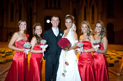 Jaqueline Rocha e Samuel Limberger oficializaram a união, após 9 anos de namoro, em bela e emocionante cerimônia na Catedral São João Batista. A celebração, digna de um moderno “conto de fadas”, aconteceu no dia 03 de março. A noiva usou um vestido branco lindo e complementou o look com sapatos vermelhos, combinando com o bouquet. As damas de honra, abrilhantaram a cerimônia, com belíssimos longos vermelhos.