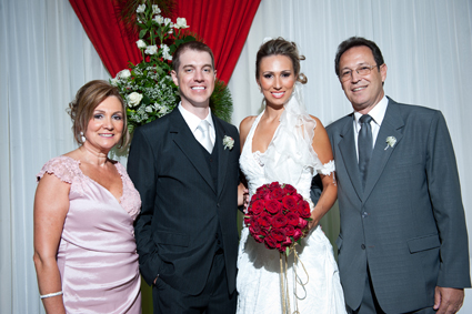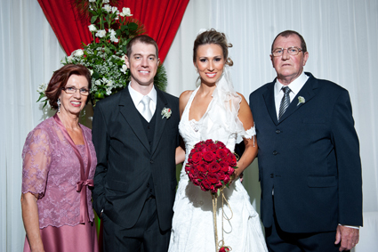 Os noivos entre os pais da noiva Diana e Moacyr Rocha